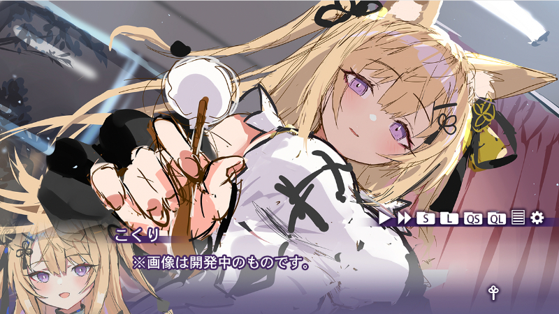 In the game, Kurune Kokuri was inadvertently summoned through the Japanese Ouija Board “Kokkuri-san” by her favorite games and delicious food.