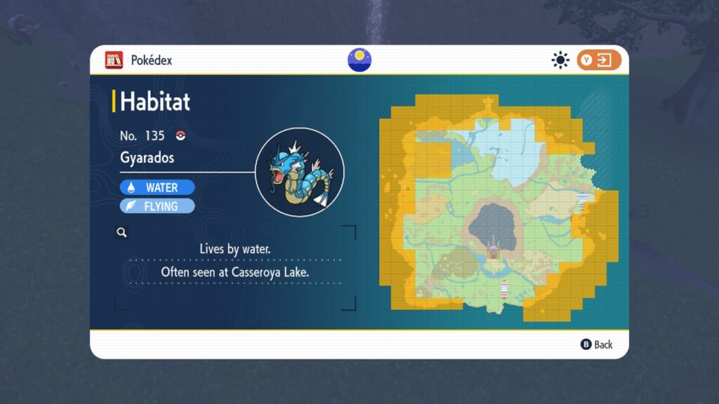 Gyarados can be spotted around the edges of the Paldea region in the ocean. However, it is more commonly found within the waters of Casseroya Lake. This is located northwest of The Great Crater of Paldea and north of Cascarrafa.